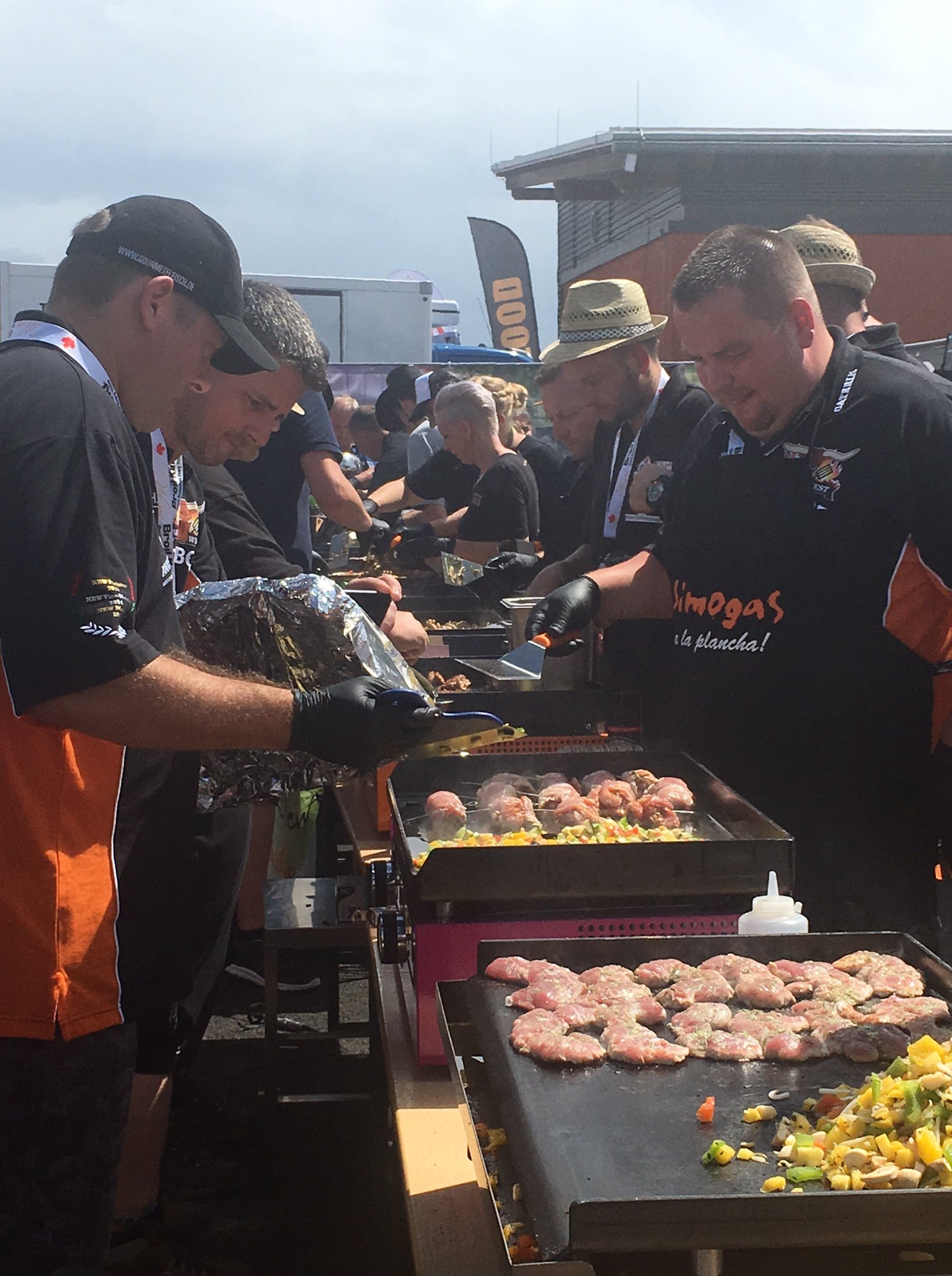 am Samstag am Plancha-Wettbewerb teilnehmen. Aber so mancher will ja zu seinem Glück gezwungen werden, und so machte es mir eingangs gar nichts aus, dass mancher vielleicht gar nicht so gerne an der Rückseite der Simogas-gesponsorten Plancha stand.