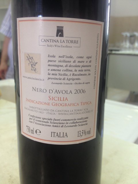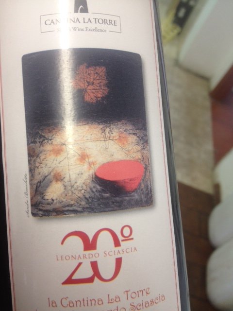 Zurück zum Wein, bzw. ein Übergang: Angelo schenkte uns eine Sammlerflasche, die zum 20. Todestag von Sciascia kreiert worden war. Wow!